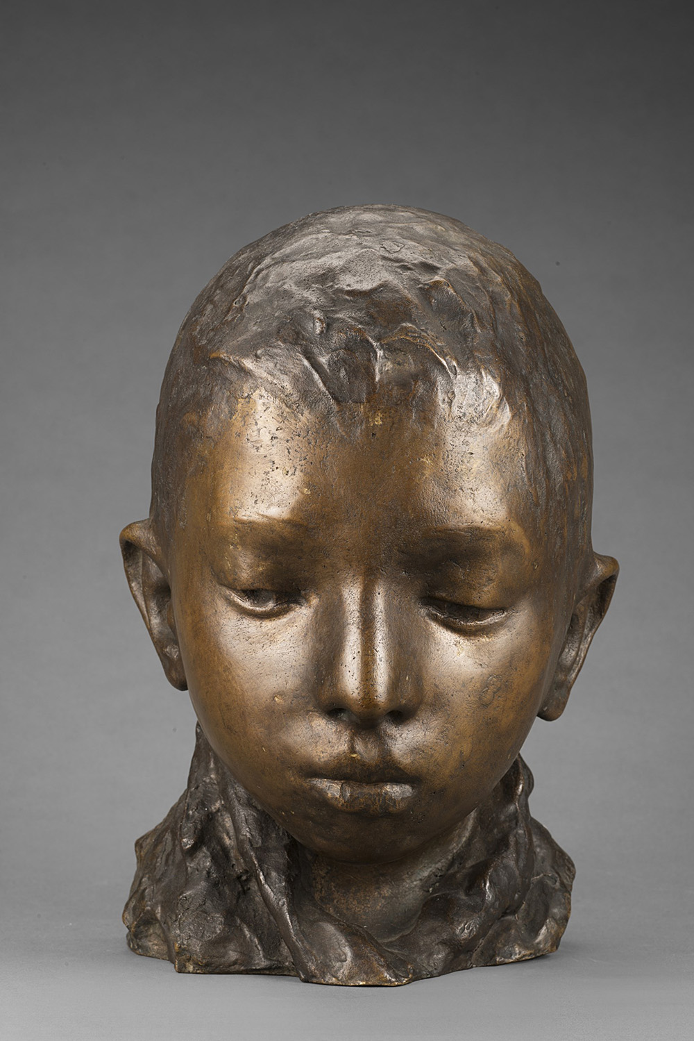 Vincenzo Gemito (Napoli 1852 - 1929)"Testa di bambino" scultura in bronzo (h...