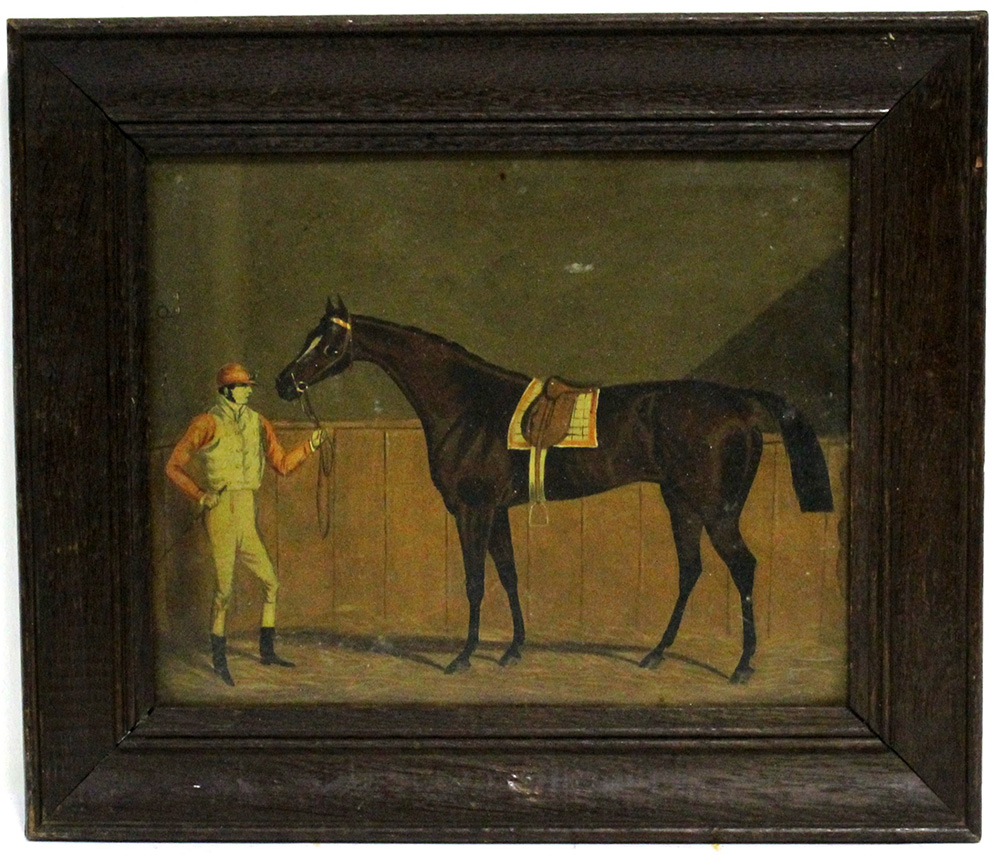 Ignoto "Cavallo e fantino" olio su cartone (cm 20x25,5) in cornice (difetti)