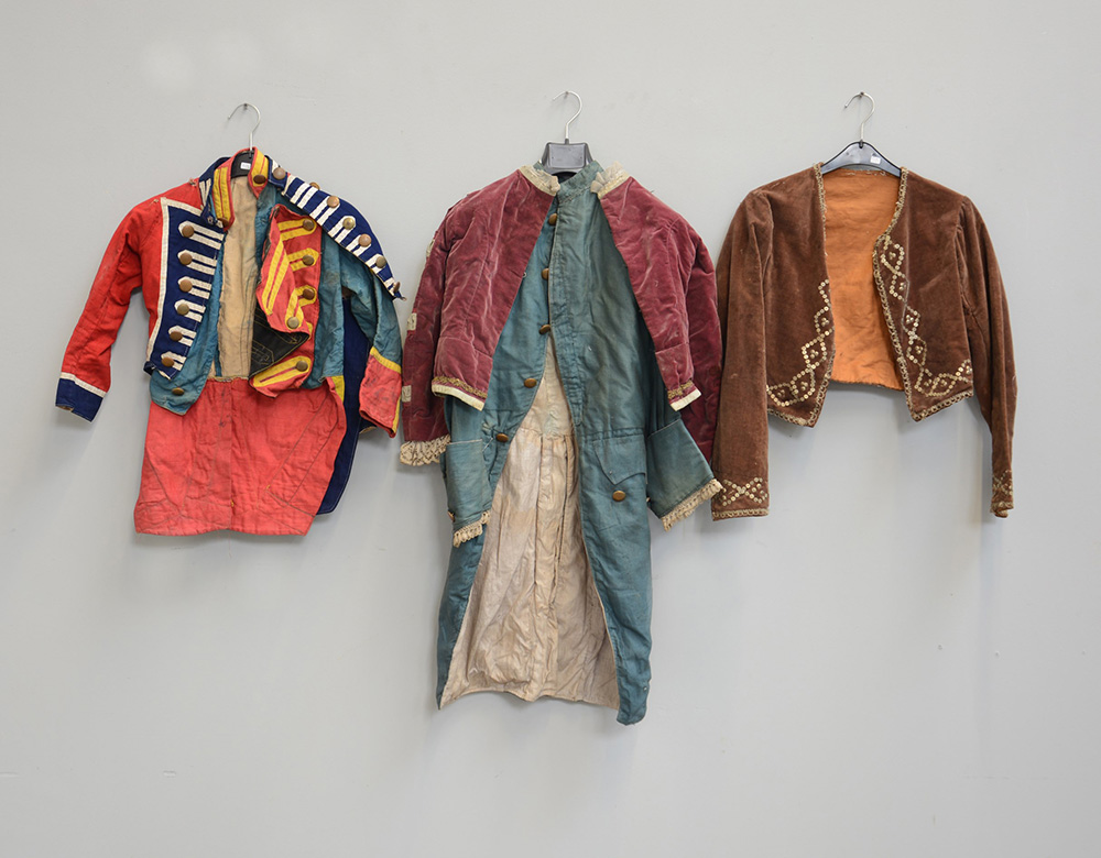 Lotto composto da tre abiti teatrali per bambini di materiali diversi (difetti)