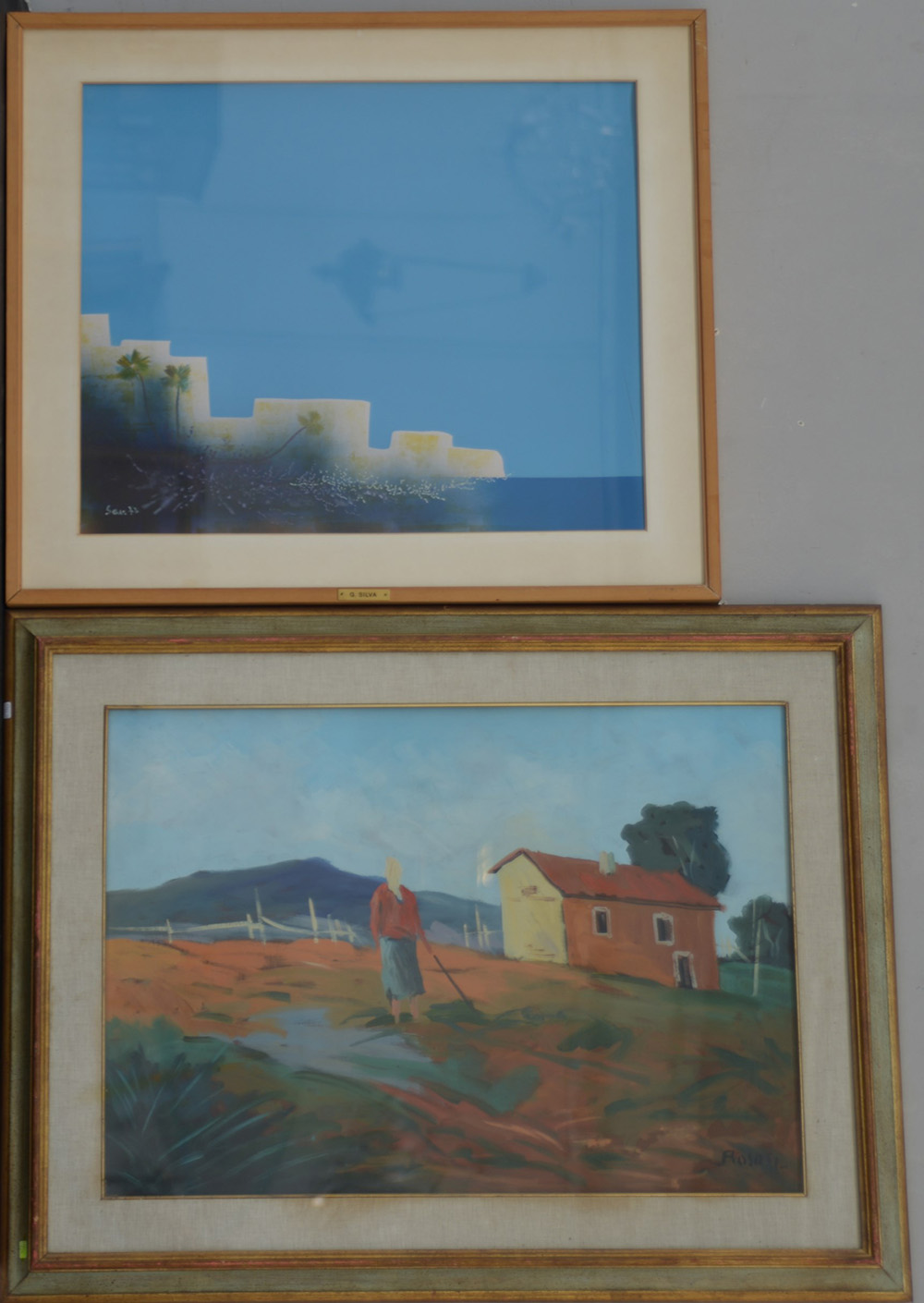 Lotto composto da due dipinti di autori diversi raffiguranti paesaggi, in...