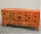 Credenza bassa il legno laccato rosso a quattro sportelli e tre cassetti con...