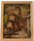 Ignoto "Scorcio di paese con campanile" olio su compensato (cm 58x46) in cornice