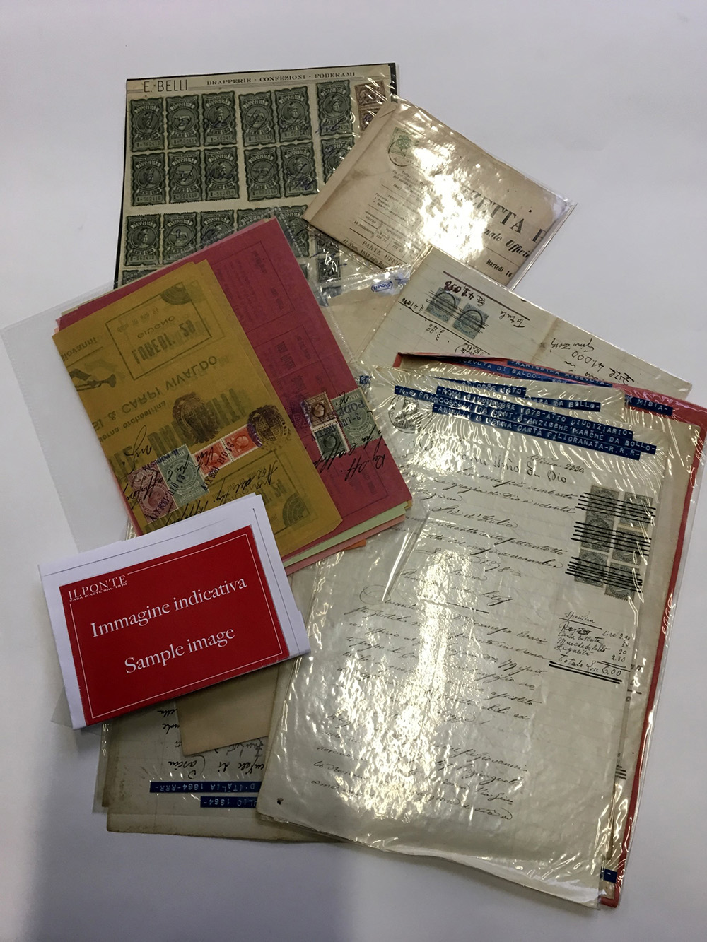 Lotto composto da alcune prefilateliche della zona di Reggio Emilia, un giornale di Lombardo-Veneto e alcuni documenti con fiscali e francobolli usati come tali. Da esaminare