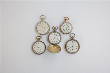 Lotto composto da cinque orologi da tasca in materiali ed epoche diverse...