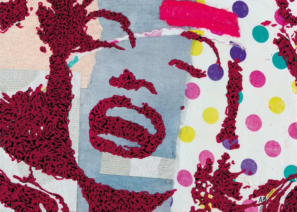 ANTONIO MURGIA Sarroch (Ca) 12/03/1956 - Mary di pezza, velluto su stoffa e carta legno cm. 50x70, titolo e firma al retro, dichiarazione d'autenticità dell'artista su foto.