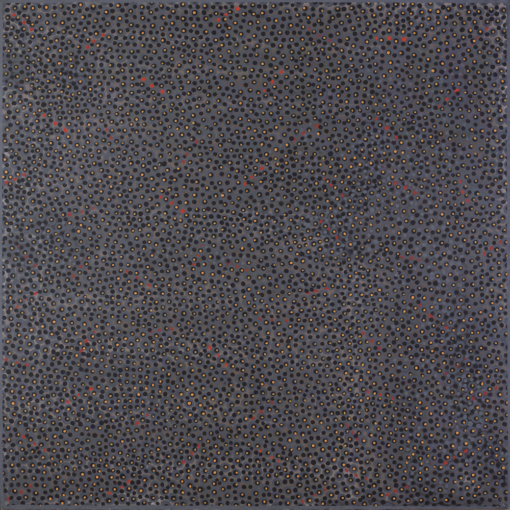 GASTONE BIGGI Roma 12/02/1925 Costellazione Mediolanum, 1992 tempera su tela cm. 130x130, firma, titolo, anno e archivio numero 1622 al retro, opera registrata presso l'Archivio Biggi come da dichiarazione su foto.