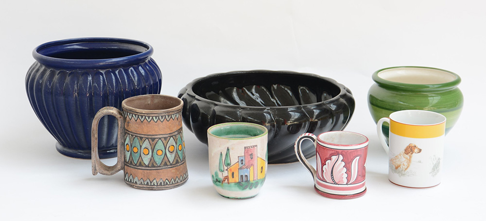 Lotto composto da sei oggetti di diversa fattura, uno marcato Schiavon (difetti)