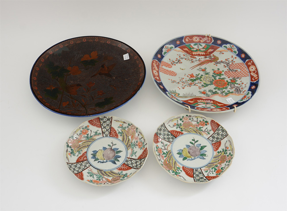 Quattro piatti in porcellana Giapponese con decori e motivi diversi (difetti e restuari)