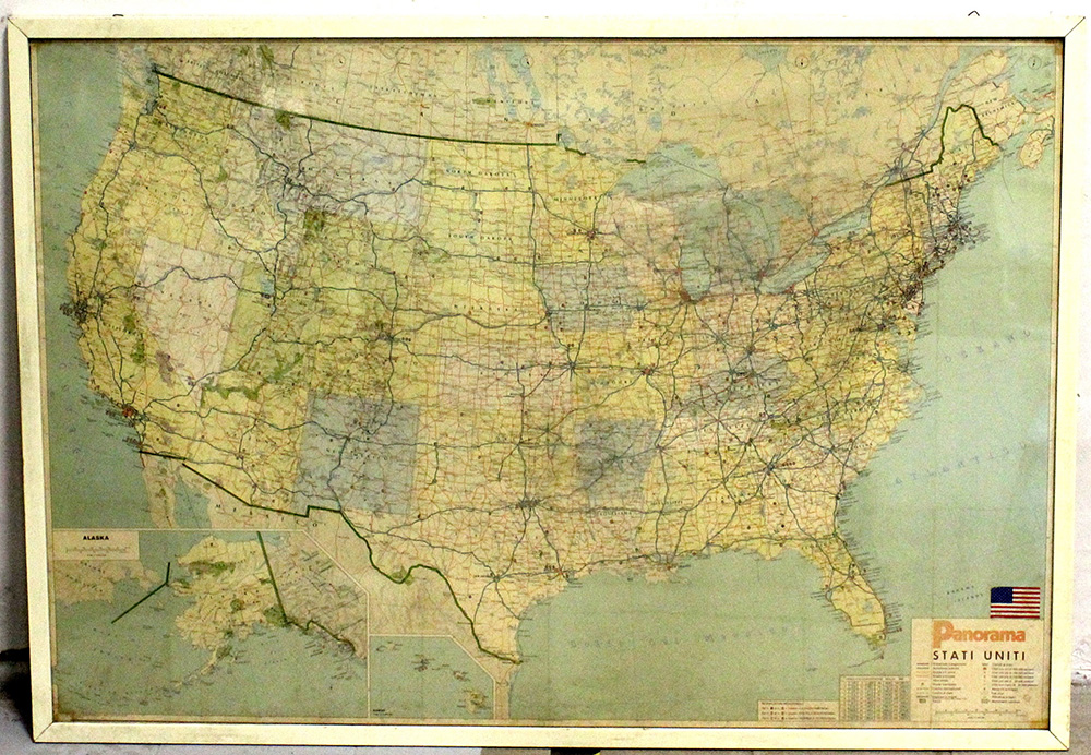 Cartina degli Stati Unini d’America (cm 68x100) in cornice (difetti)