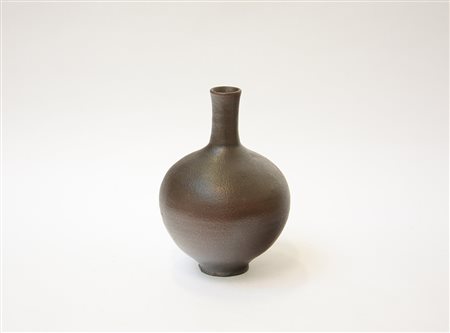 Vaso di forma globulare anni '40 in ceramica brunita (h cm 26)(lievi difetti)