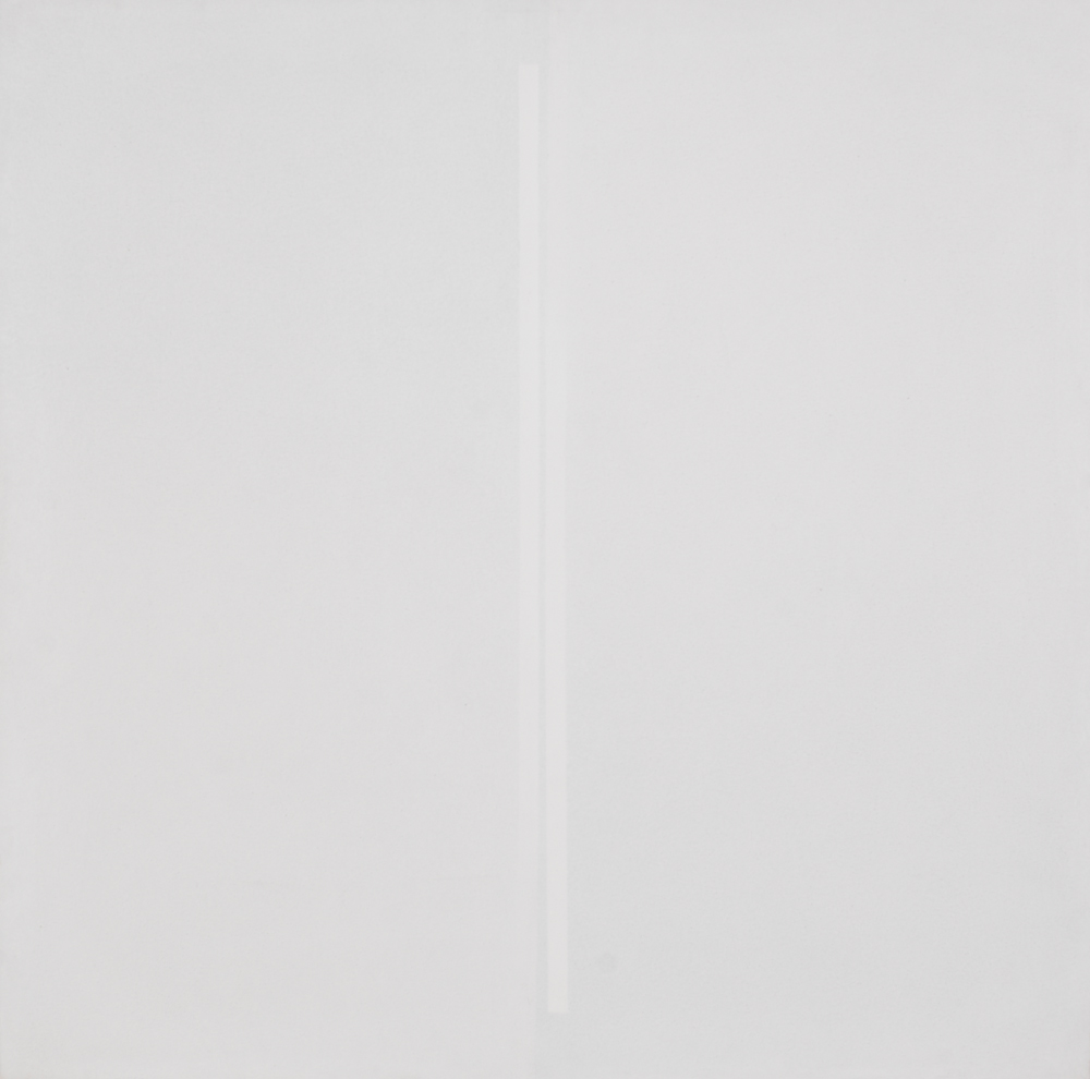 GIANFRANCO ZAPPETTINI Genova 16/06/1939 Luce bianca su due linee verticali, 1974 acrilico su tela cm. 80x80, firma, titolo, anno, tecnica e numero di catalogo 96 al retro, dichiarazione d'autenticità dell'artista, etichetta e timbro della Fondazione Zappettini (Chiavari) su foto.