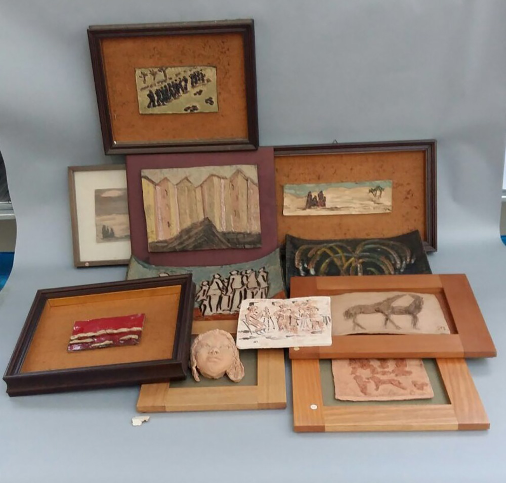 Gruppo di dodici placche in terracotta dipinta di soggetto e misure differenti (due cartoni) (difetti)