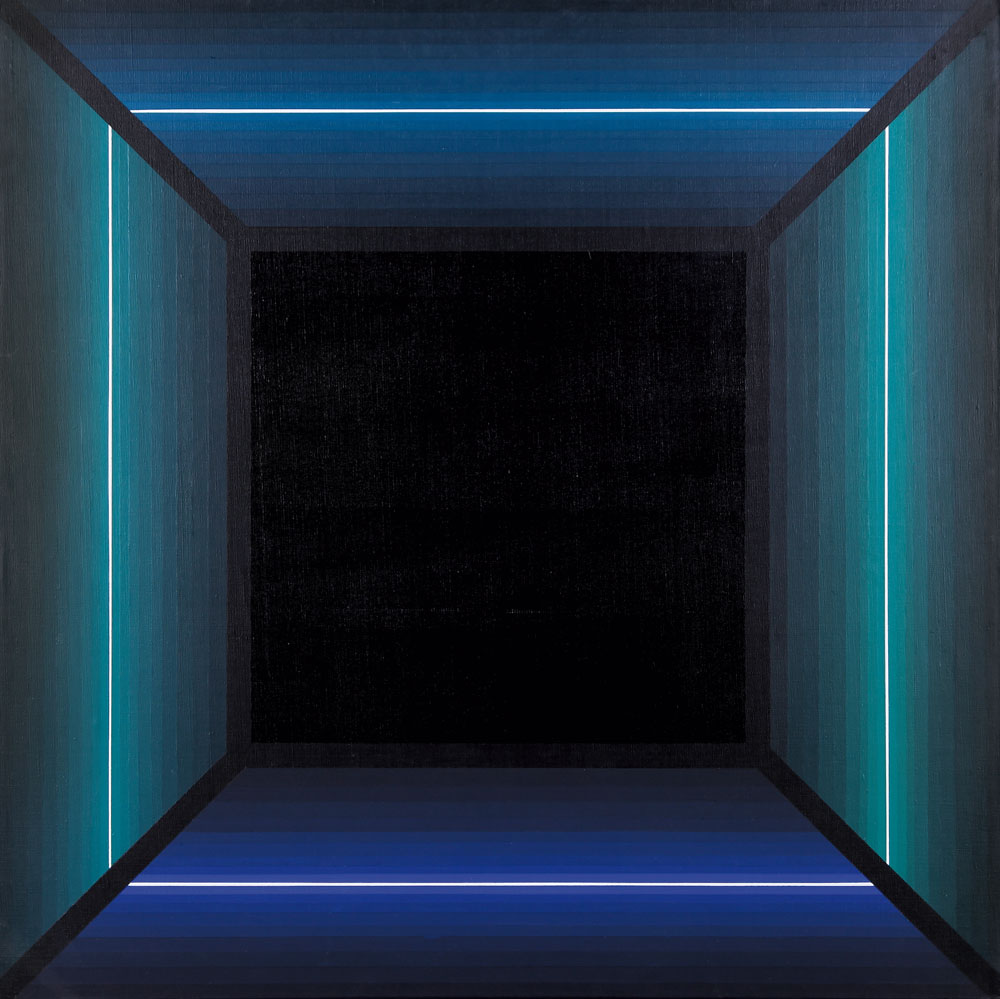 HORACIO GARCIA ROSSI Buenos Aires (Argentina) 1929 Couleur non lumière, 1996 acrilico su tela cm. 80x80, firma, titolo, anno, località (Paris) ed etichetta della Galleria d'Arte Fumagalli (BG) al retro, dichiarazione d'autenticità dell'artista su foto, entro teca in plexiglass.
