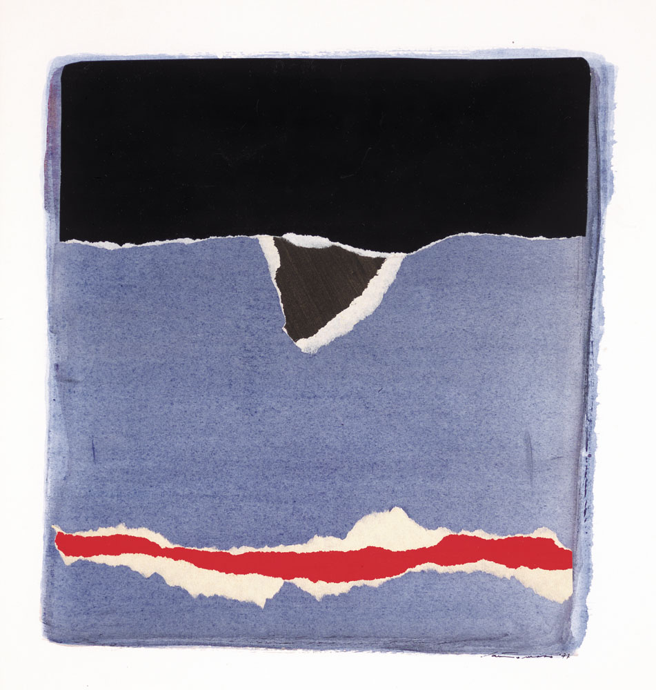 GIUSEPPE SANTOMASO Venezia 26/09/1907 - 24/05/1990  Linea rossa, 1977  gouache e collage su carta cm. 38x38, firma e anno in basso a destra, opera registrata presso l'Archivio Santomaso come da e-mail di conferma allegata.