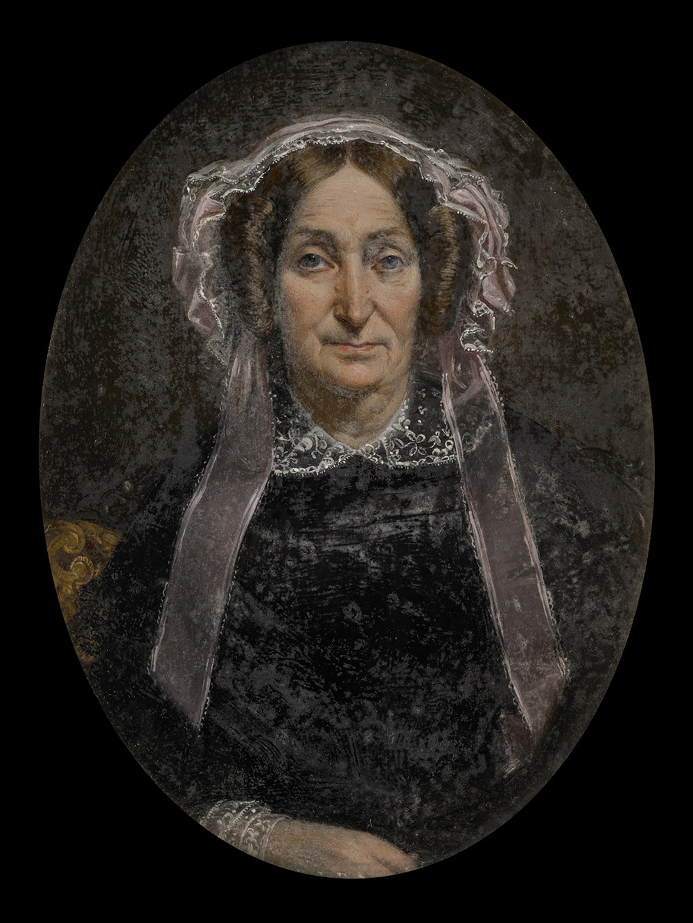 School of the 19th century "Portrait of General Baron Gabriel Neigre and his Wife" pair of oval reverse paintings (cm 14.5x10.5) Framed (defects and losses)