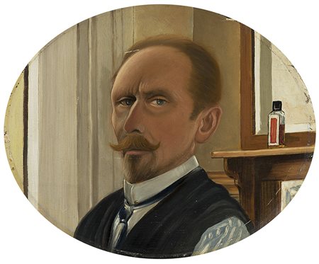 Ignoto "Gentiluomo con baffi" olio su masonite (cm 37x44) Datato al retro. In cornice ovale (difetti e mancanze)