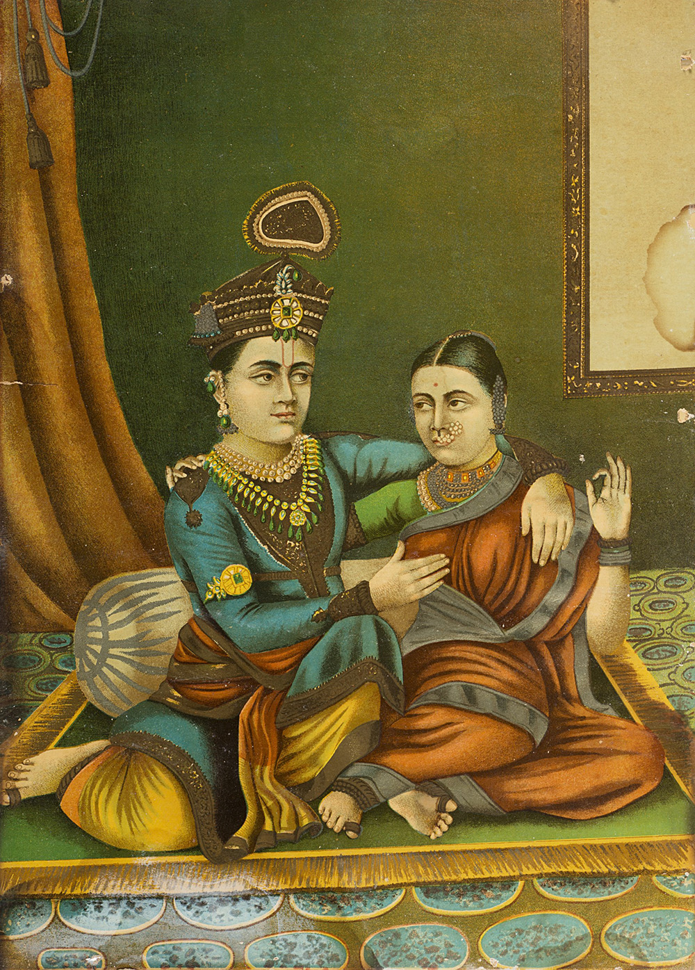 Oleografia indiana raffigurante scena amorosa (cm 34x24,5) In cornice (difetti)