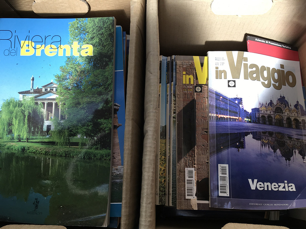 Lotto composto da svariate pubblicazioni del TCI e numeri di riviste sui viaggi. In due cartoni.