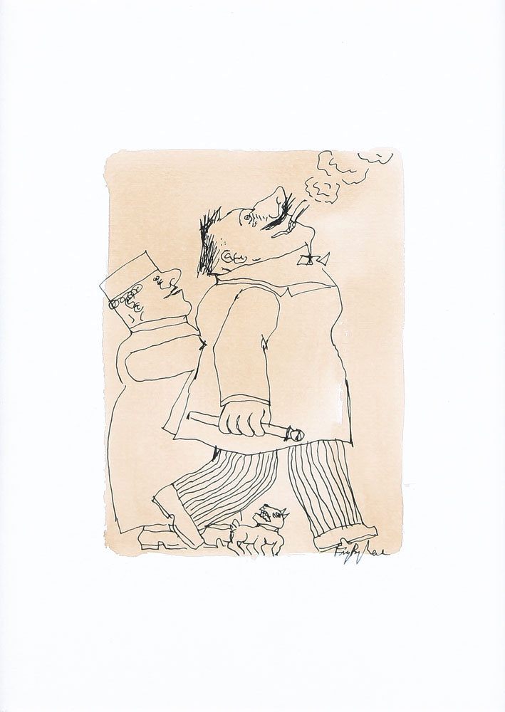FRANZ BORGHESE Roma 21/01/1941 - Roma 17/12/2005 Passeggiata gouache su carta cm. 35x25, firma in basso a destra, dichiarazione d'autenticità dell'artista su foto.