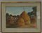 Firma indecifrata "Paesaggio con contadini e covoni" olio su tela applicato...