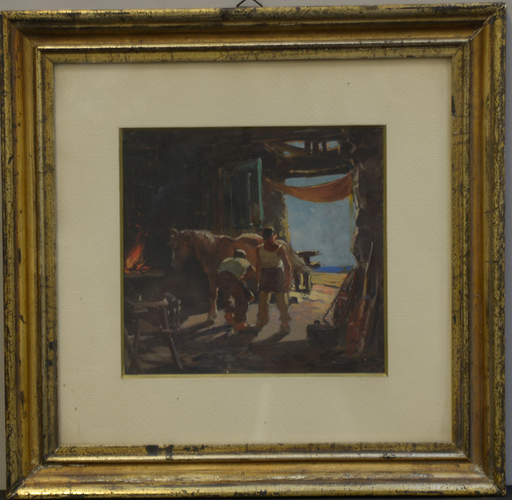 Ignoto "Il maniscalco" olio su tavoletta (cm 19x18) in cornice