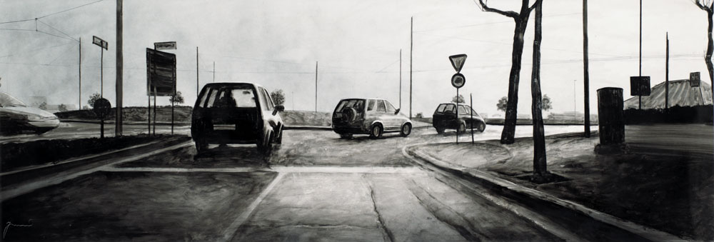 DAVIDE FRISONI Rimini 1965 Senza titolo, 2006 tecnica mista su carta cm. 42,5x127,5, firma in basso a sinistra, certificato di garanzia della Galleria Allegrini Arte Contemporanea (BS) allegato, pubblicato sul catalogo "Frisoni", Edizioni Galleria L'Acquario (Giulianova-TE) con dimensioni errate.