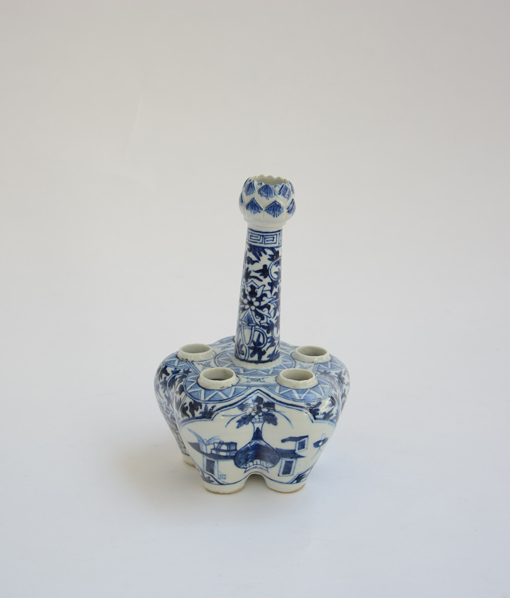 Tulipaniera in porcellana bianca e blu (difetti e restauri)