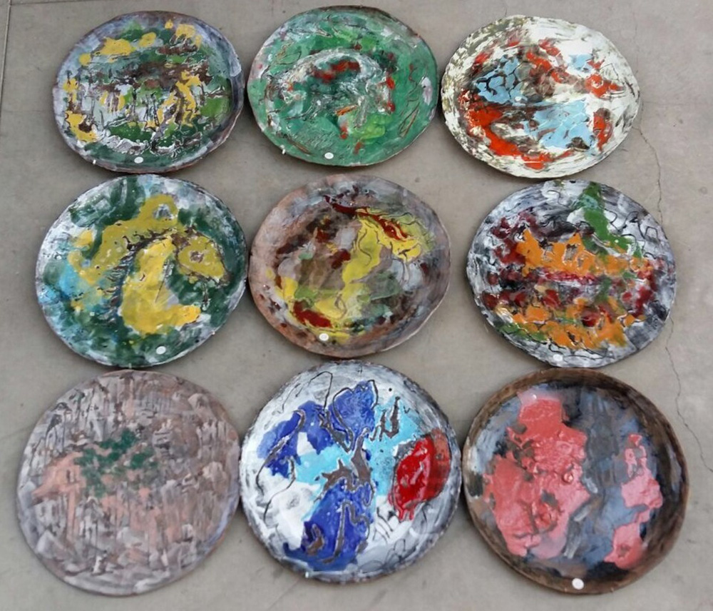 Gruppo di numerosi piatti decorativi in terracotta smaltata (d cm 40 ca) (difetti)