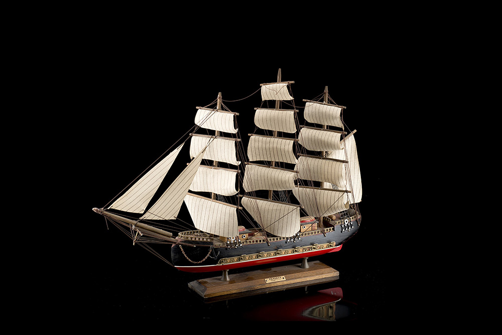 Modello in legno di veliero a tre alberi (l. cm 70) (difetti)
