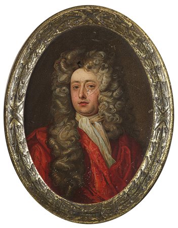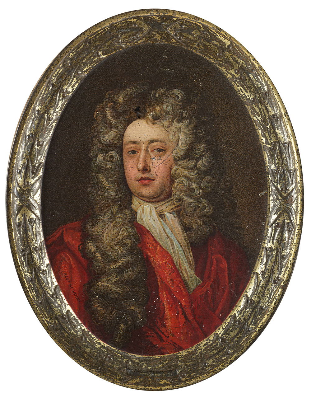 Oleography of a gentleman with wig printed on tin, late 19th century