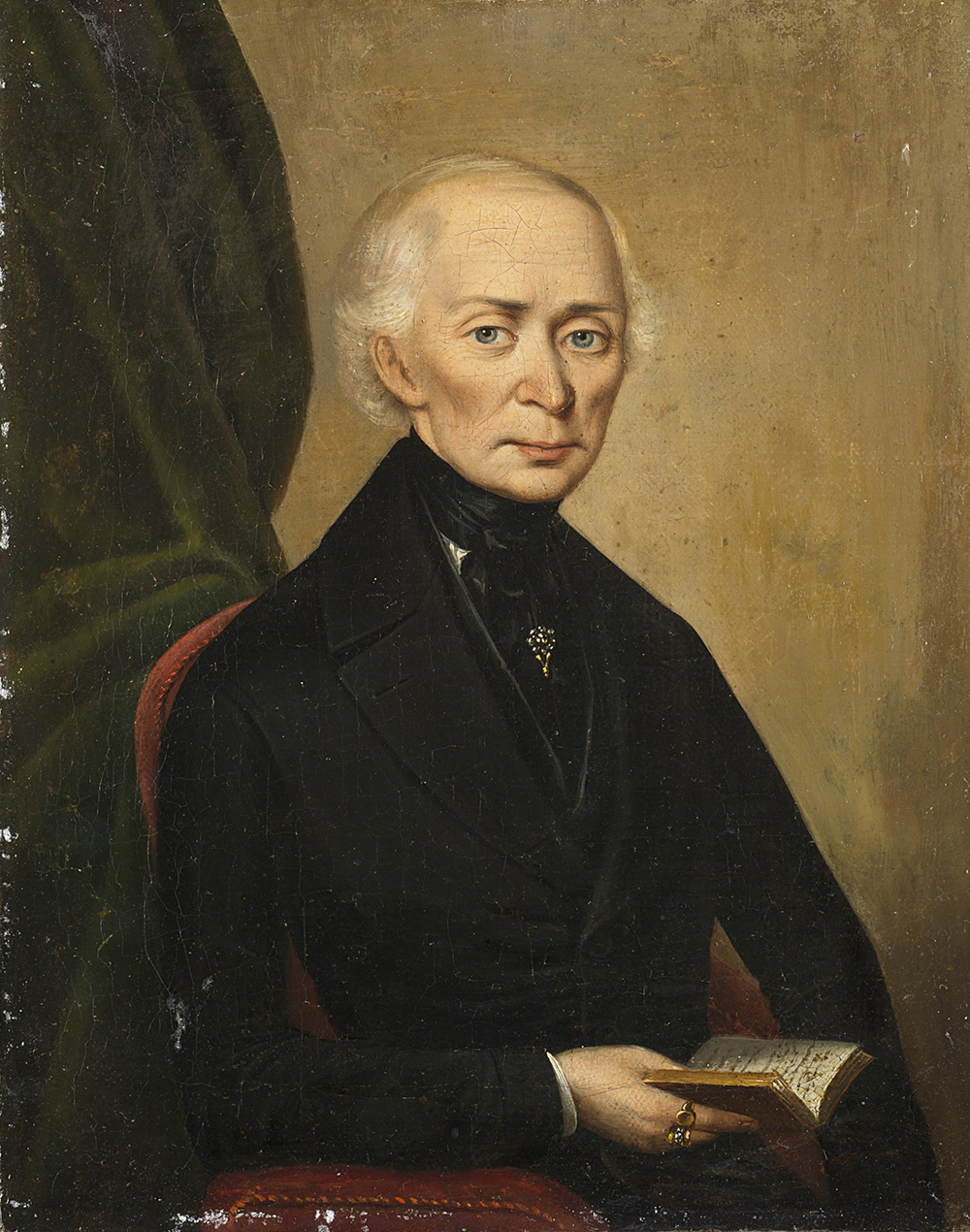 School of the 19th century "Portrait of a Scholar" oil on canvas (cm 33.5x27) Framed (defects)