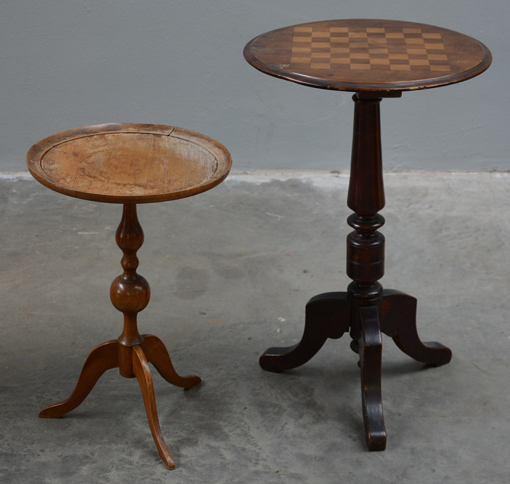 Lotto di due tavolini tripodi circolari (difetti)