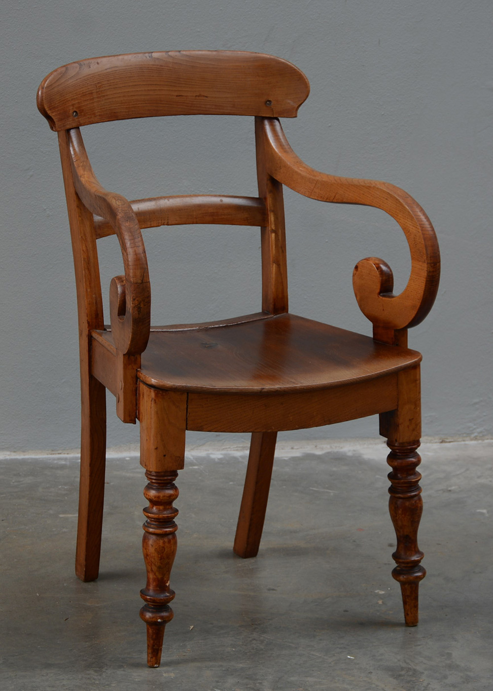Poltroncina con schienale a giorno montanti curvi piedi anteriori torniti...