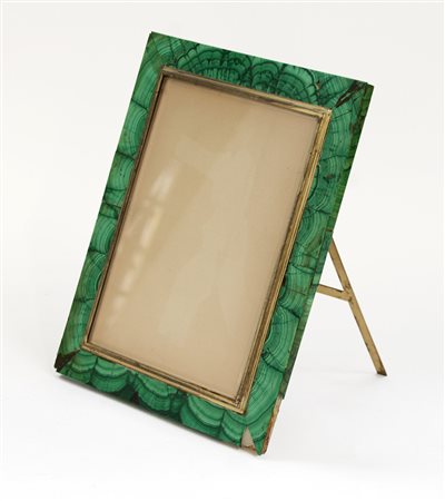 Cornice portafoto lastronata in malachite e costruito in argento dorato...