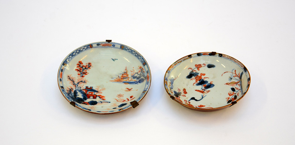 Coppia di piattini decoro Imari, il retro decorato café-au-lait (difetti)