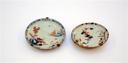 Coppia di piattini decoro Imari, il retro decorato café-au-lait...
