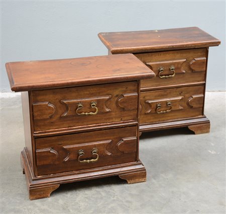 Coppia di comodini a due cassetti pannellati piedi a mensola (difetti)