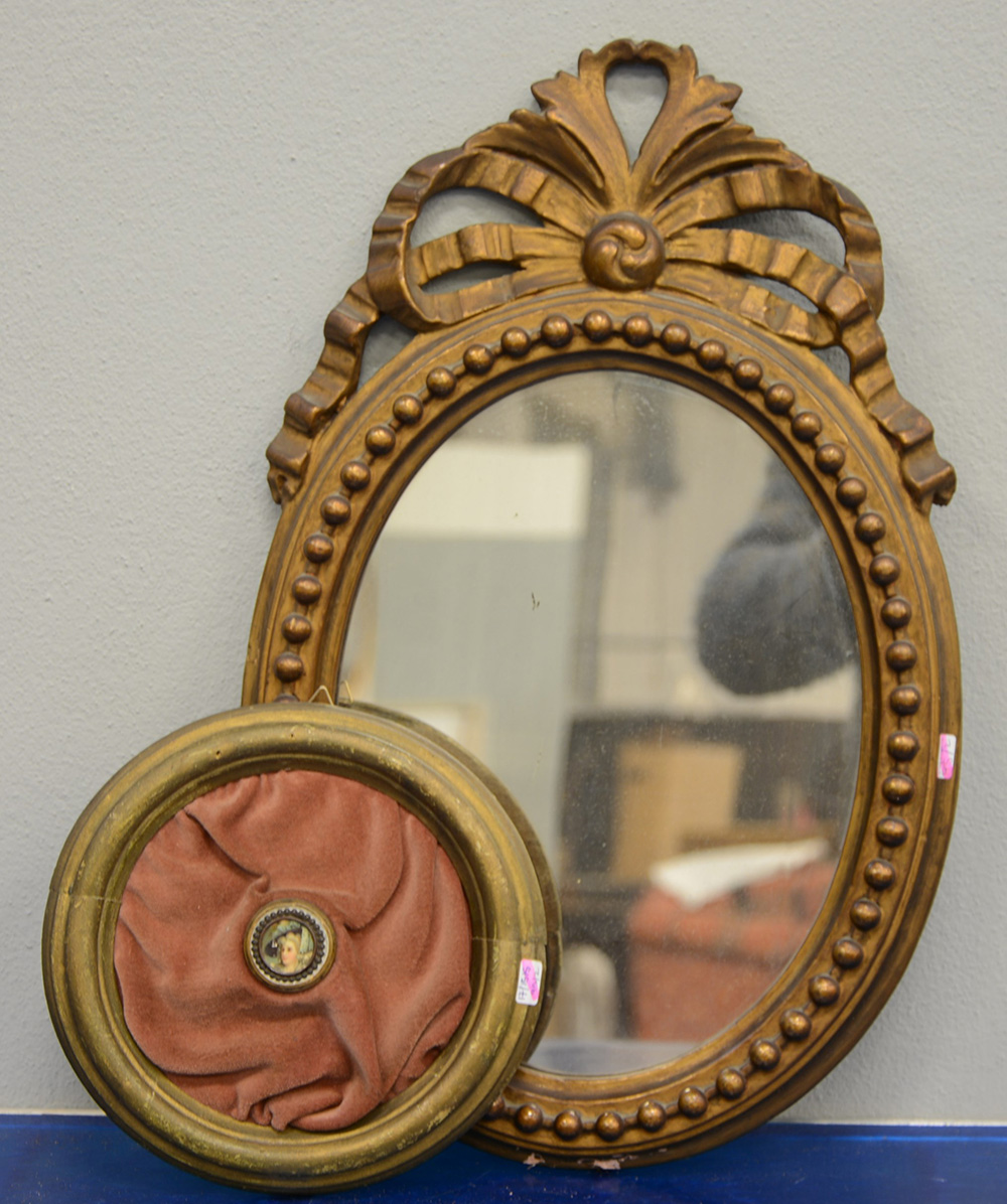 Lotto composto da una cornicetta ovale in legno dorato ed una tonta...
