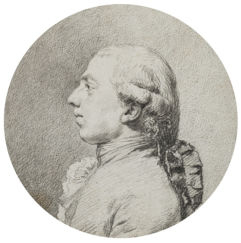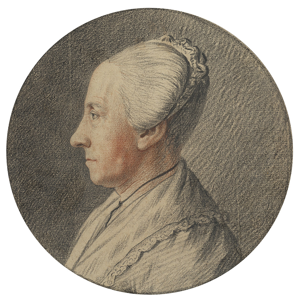 School of the 19th century "Profiles" group of five mixed medias on rounded paper of different sizes (d. from 15.5 to 19) Framed (defects)
