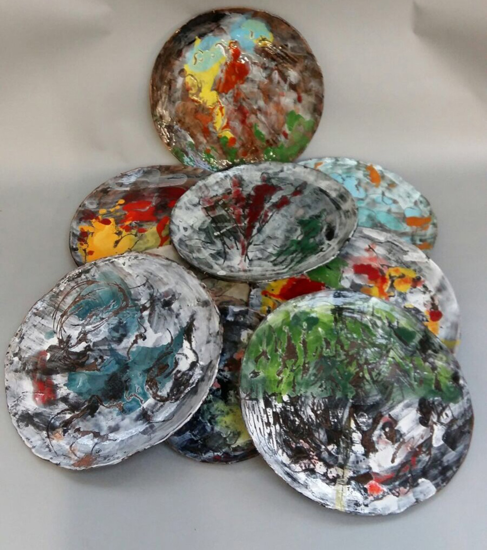 Magnaghi Matilde Gruppo di numerosi piatti decorativi in terracotta smaltata...