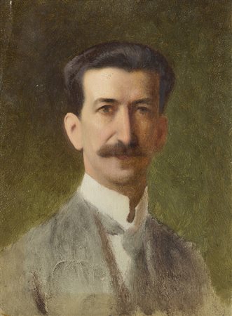 Scuola del sec. XX "Busto di gentiluomo con giacca grigia" olio su tavola (cm...