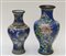 Due vasi in metallo cloisonné con decoro floreale su fondo turchese