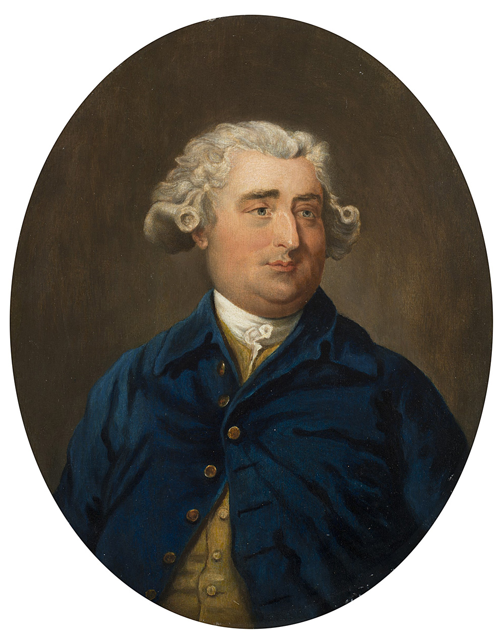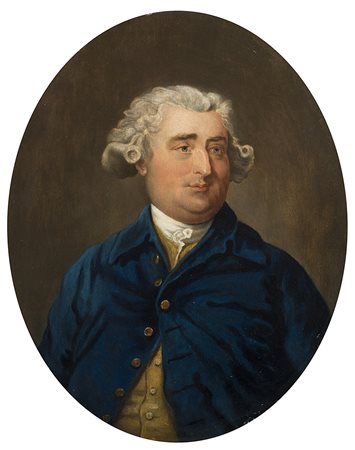 Scuola della fine del sec. XVIII "Ritratto di gentiluomo con giacca blu" olio su tavola (cm 27x21) In cornice in legno e pastiglia dorata (difetti) Provenienza: Ackermann & Johnson London