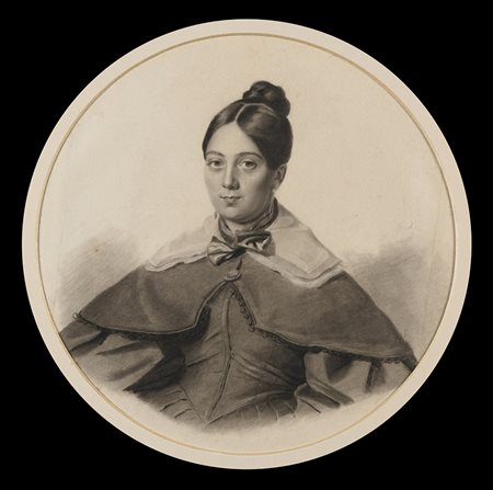 Scuola del sec. XIX "Ritratto di gentildonna con ampia mantella" stampa (cm...