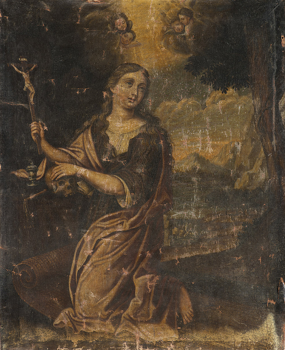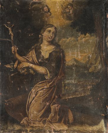 Scuola Italiana del secolo XVIII "Santa Maria Maddalena penitente" olio su tela (cm 74x62,5) (senza telaio, difetti e mancanze)