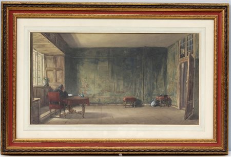 William Harding Collingwood Smith (attr.) "La lettura" 1869 acquarello su...