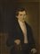 School of the 19th century "Portrait of a Notable with a Book" oil on canvas (cm 28x21) Handwritten label to reverse. Framed (defects and restorations)