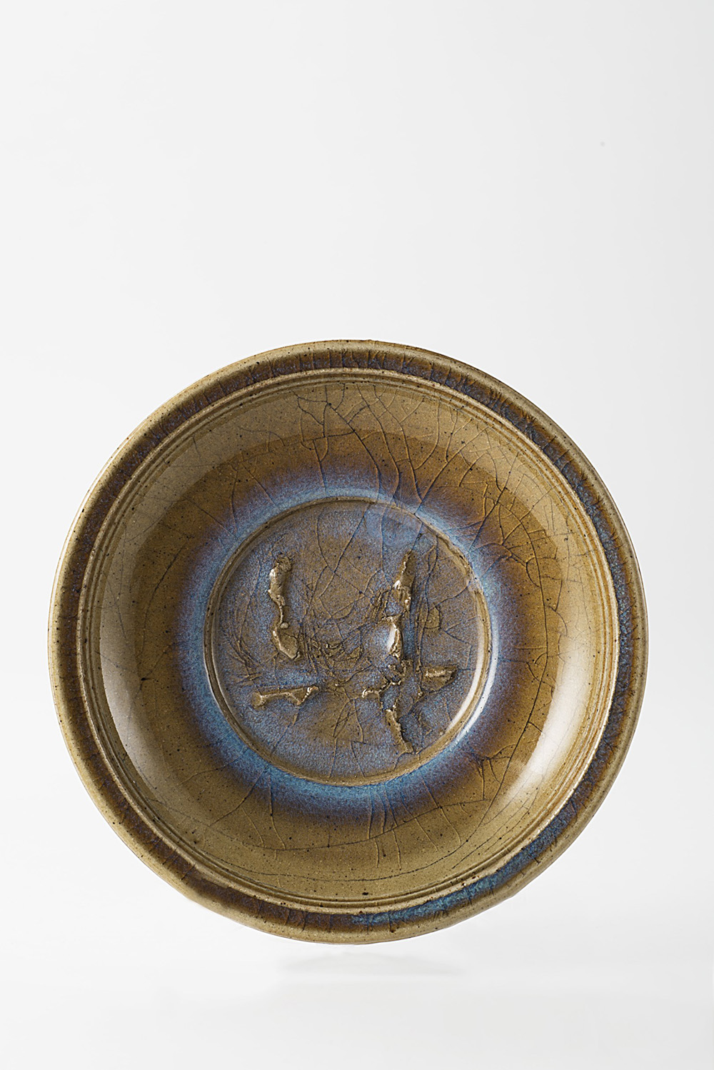 Roger Collet (1933 - 2008)Piatto in ceramica smaltata in beige sotto vetrina,...
