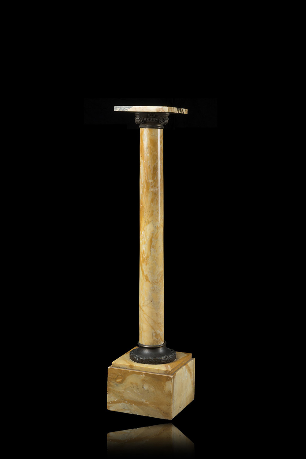 Colonna portavaso in marmo decorata con capitelli in bronzo brunito (h. cm 106) (difetti)