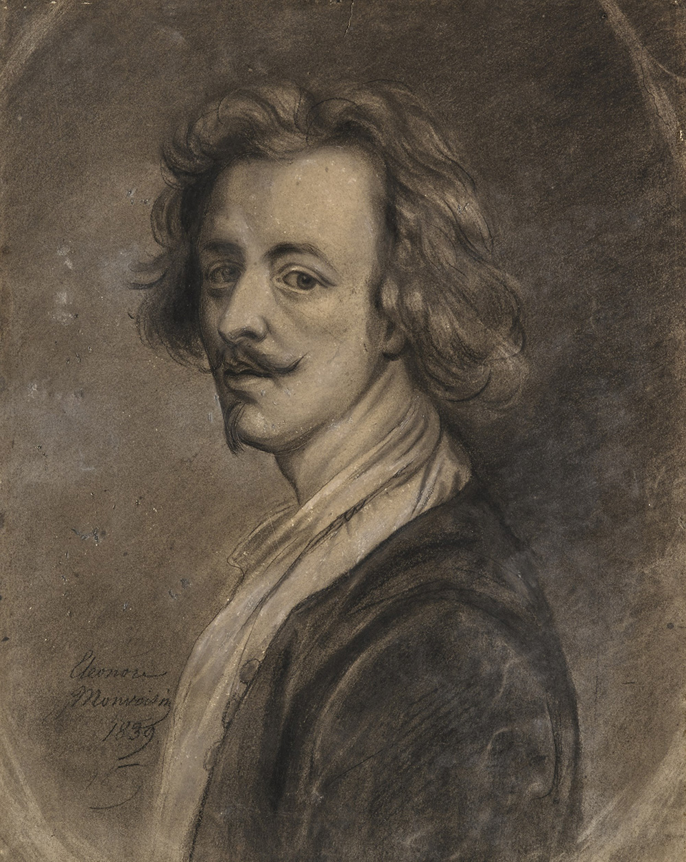 Eleonore Monvoisin (France, 19th century) "Portrait of a Gentleman 1839" charcoal and white lead on paper (cm 27x22) Signed and dated at bottom left. Framed